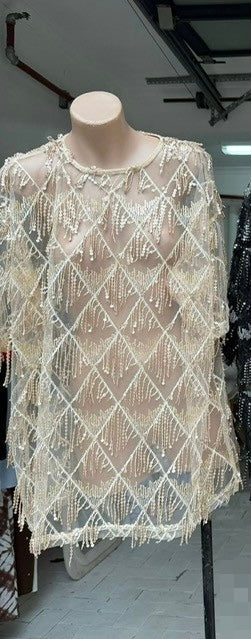 Amber Sequin Oversized Tee - Beige | By Frankie
