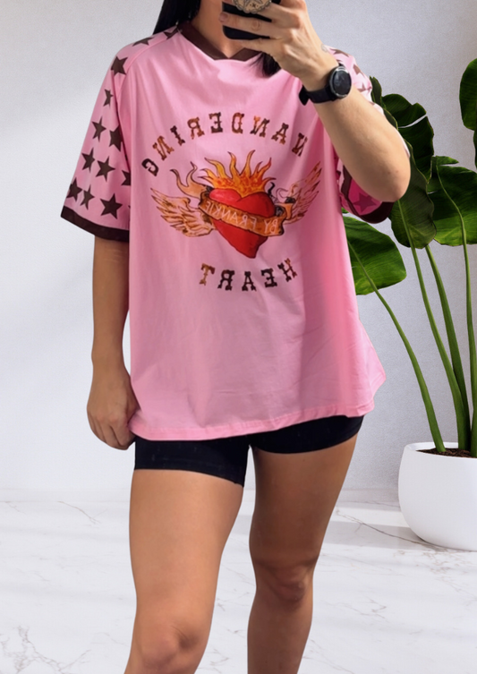 Jersey Oversized T-Shirt - Pink Wandering Hearts