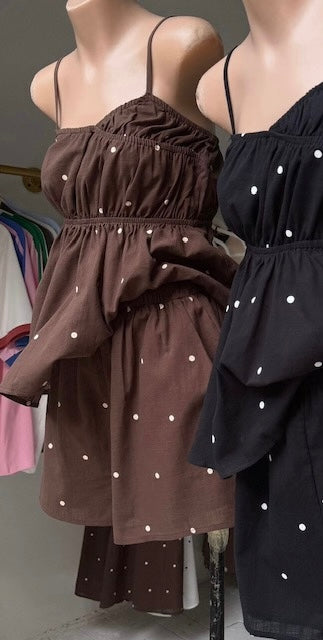 Rachel Mini Polka Dot Shirt & Short Set - Chocolate | By Frankie