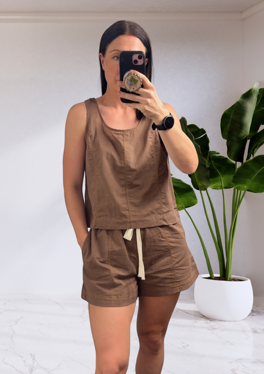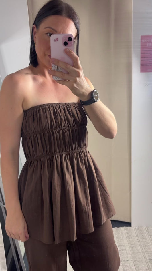 Veronica Shirred Tube Top & Pants Set - Brown