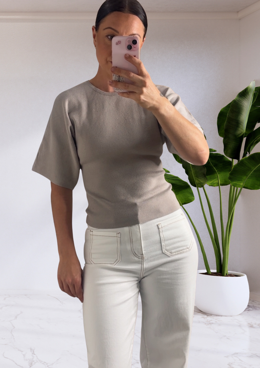 Batwing Sleeve Detail Knit Top - Oyster