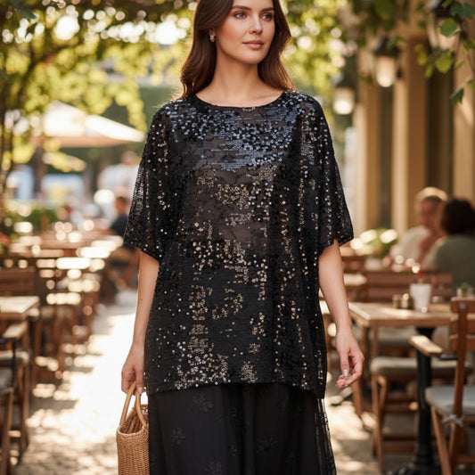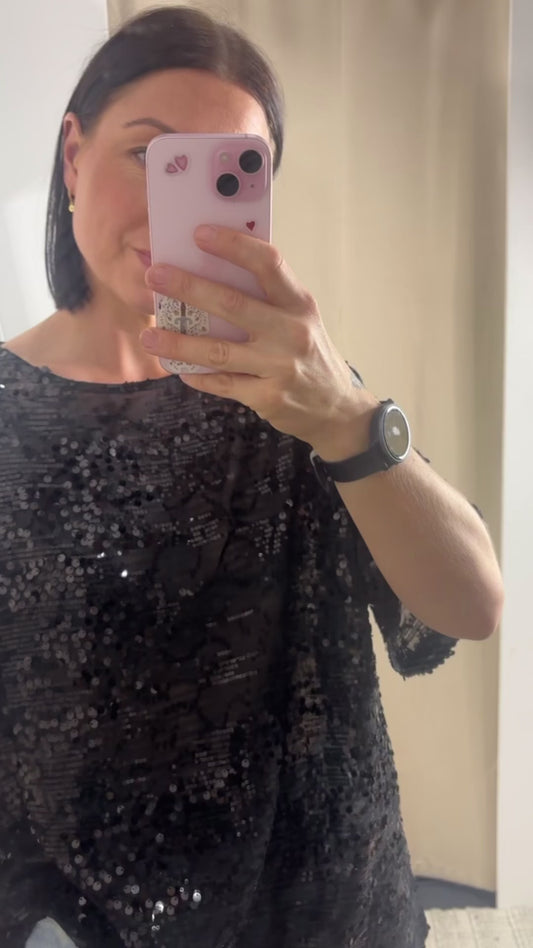 Phoebe Pattern Sequin Top - Black | By Frankie