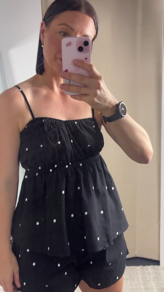 Rachel Mini Polka Dot Shirt & Short Set - Black