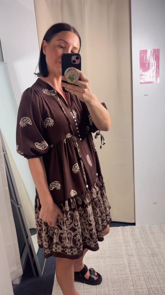 Taya Button Up Shirt & Shorts Set - Chocolate Brown | By Frankie