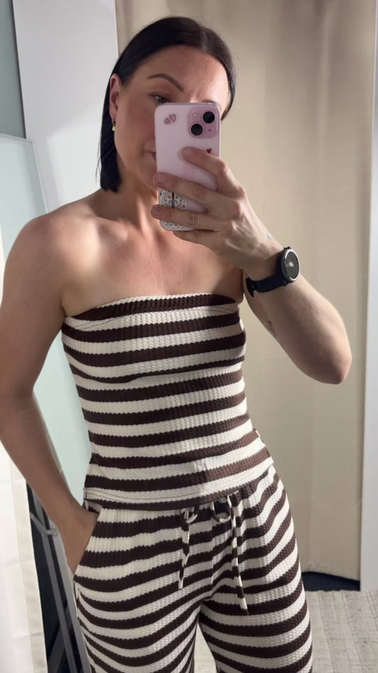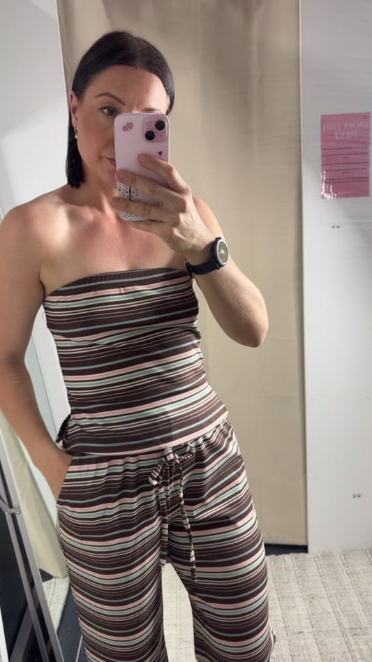 Amy Strapless Tube Top & Pants Set - Brown Stripe