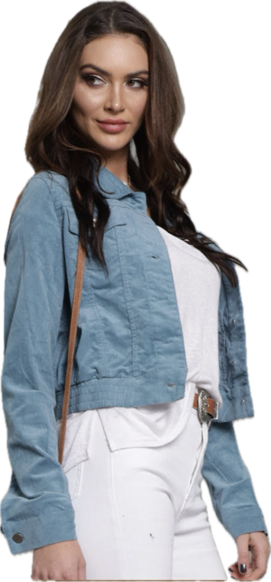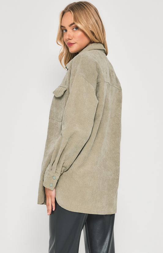 Corduroy Button Up Shacket with Front Pockets - Sage