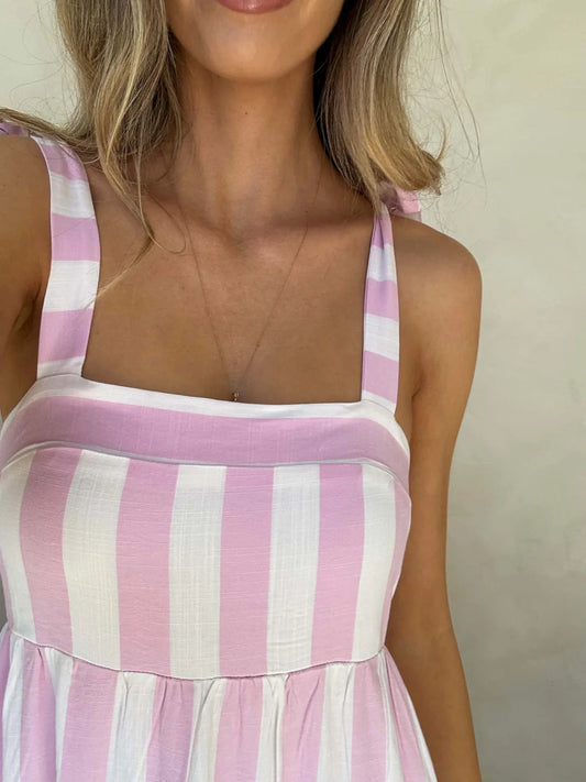 Cleo Tripe Shoulder Tie Maxi Dress - Light Orchid