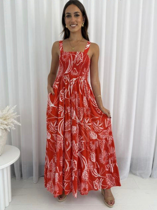 Cupid Sleeveless Shirred Bust Maxi Dress - Red