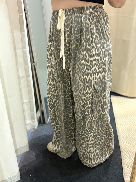 Daphne Cargo Denim Long Pants - Light Leopard | By Frankie