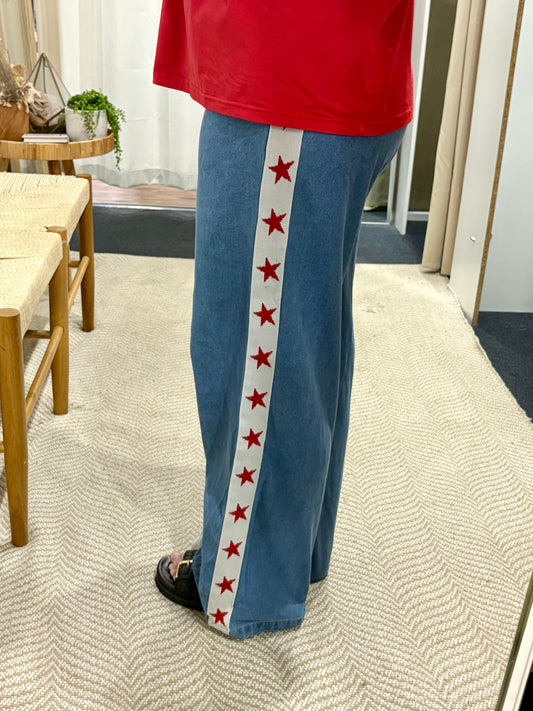 Daphne Denim Racer Long Pants - Blue Star | By Frankie