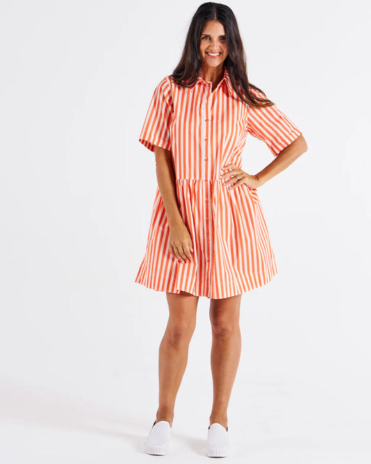 Denver Cotton Dress - Orange Tangerine Stripe