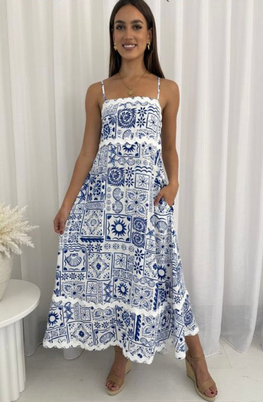 Donatella Long Sleeve Button Up Maxi Dress - Azure