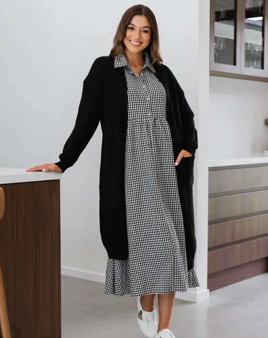 Elsie Button Up Bust Maxi Dress - Black White Gingham
