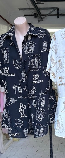 Emma Button up Playsuit - Long Live Cowgirls Black | By Frankie Playsuit