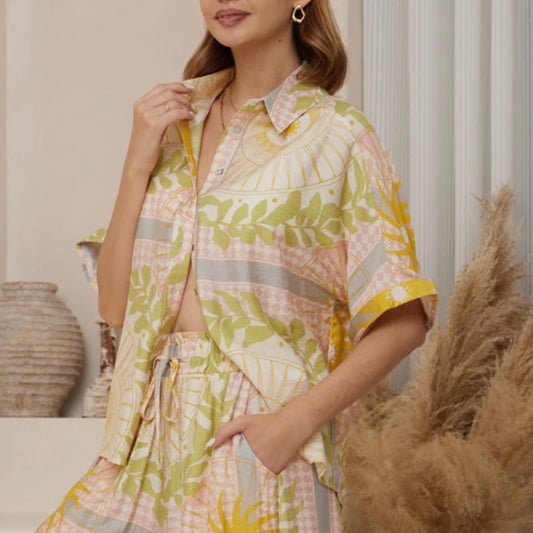 Elouise Short Sleeve Button Up Shirt - Yellow Star Burst