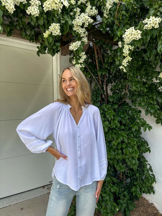 FALLON LONG SLEEVE BUTTON UP BLOUSE TOP - WHITE