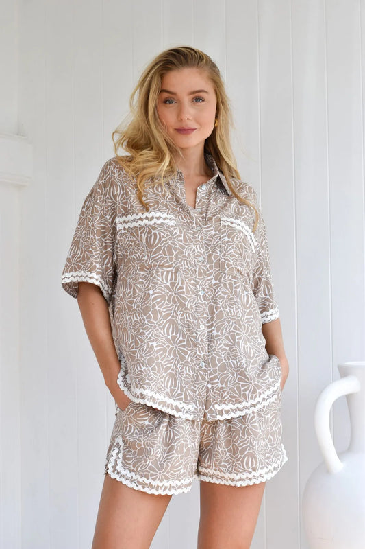 FIESTA MATCHING SHIRT TOP & SHORTS SET - BROWN