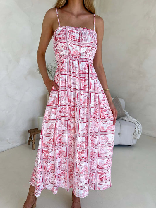 Alexi Shirred Bust Maxi Dress Red Paradise