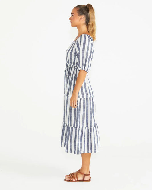 HARLEY OFF THE SHOULDER MIDI DRESS - STRIPE