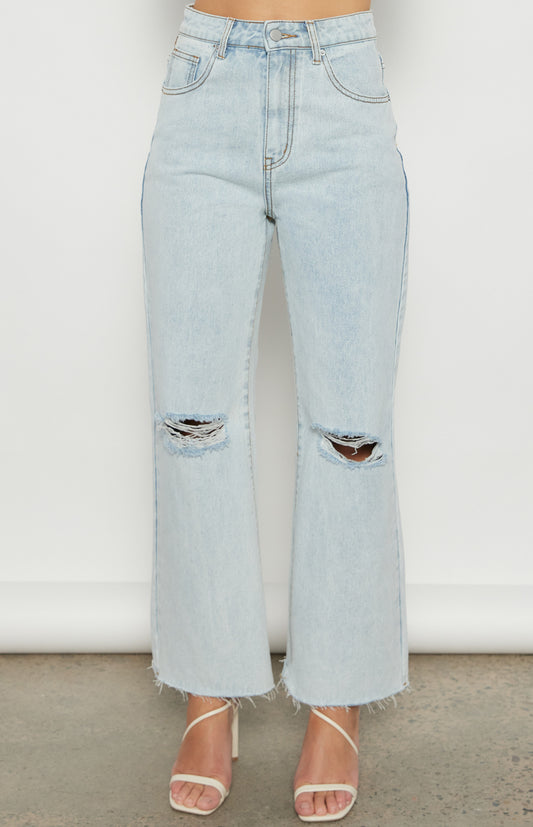 Indy High Waisted Ripped Detail Denim Jeans - Light Blue