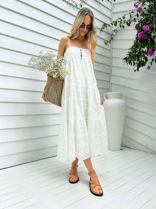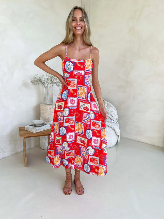 Isla Structured Bust Linen Blend Maxi Dress - Casablanca White Red