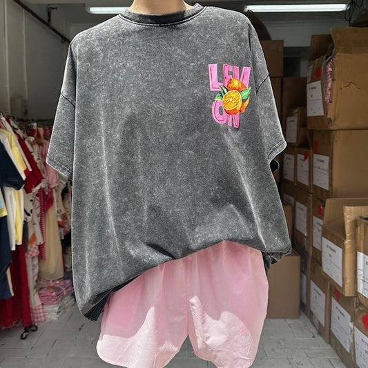 Ivy By Frankie Tee Shirt & Shorts Set - Lemon Black Wash