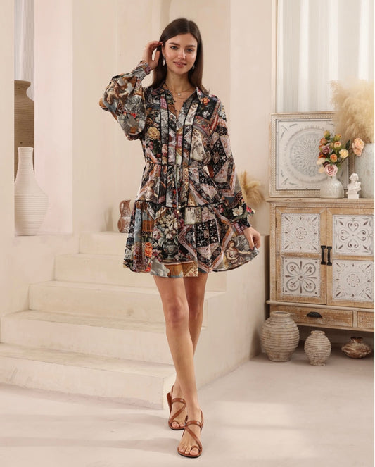 Jody Long Sleeve Mini Dress - Black Vintage