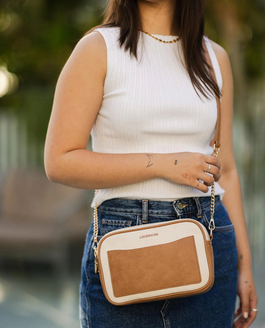 Jolene Canvas Crossbody Bag - Cream Camel | LOUENHIDE