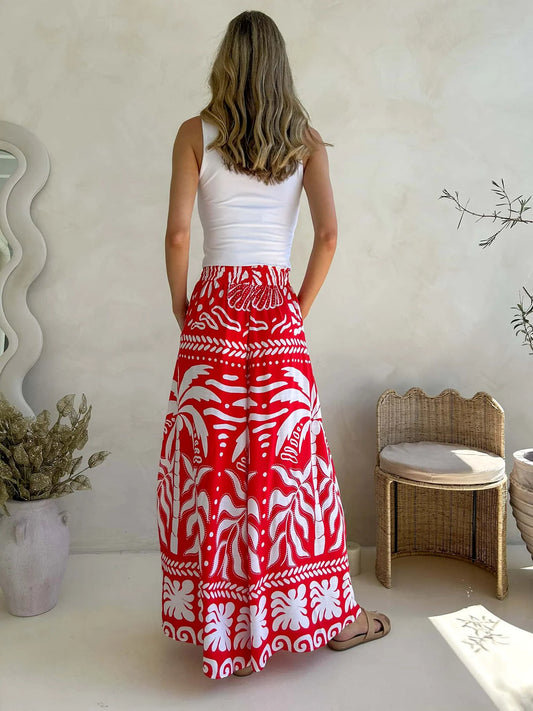 Jessika Wide Leg Pant - Red Bora Bora PRINT