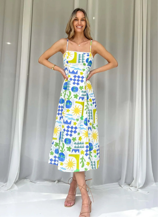 Juniper Sleeveless Midi Dress - Beachcomber Print