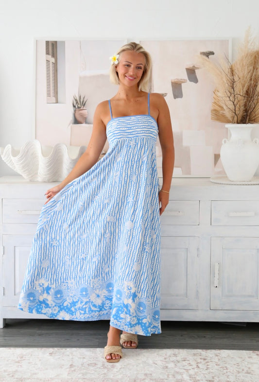 Kacey Spaghetti Strap Maxi Dress - Blue Sea Shell