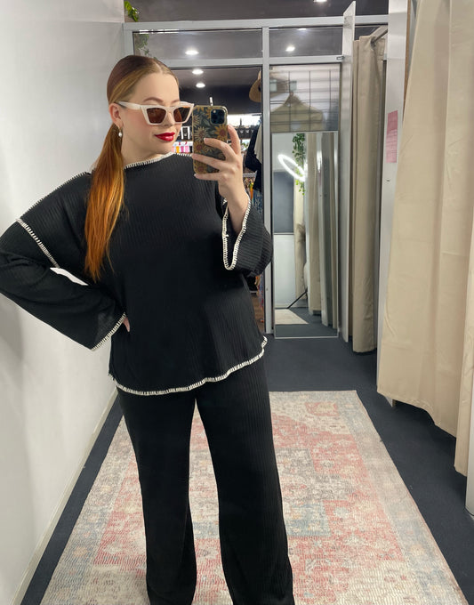 Kai By Frankie Rib Knit Long Sleeve & Pants Set - Black
