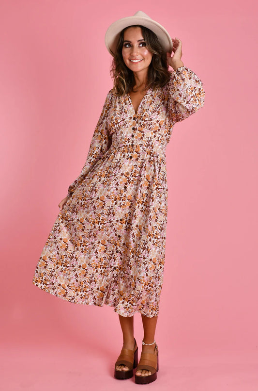 Juliette Long Sleeve Midi Dress - Vintage Bloom