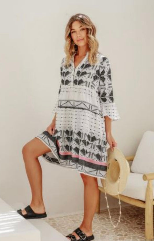 Kelly Mediterranean Embroidered Dress - Black Beige | Joop & Gypsy