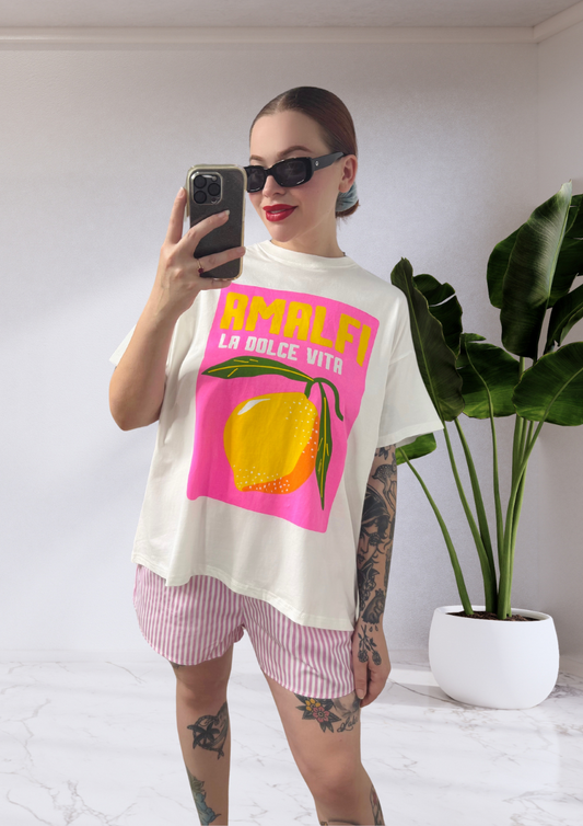 Mya By Frankie Oversized Tee T-Shirt - Amalfi Pink White