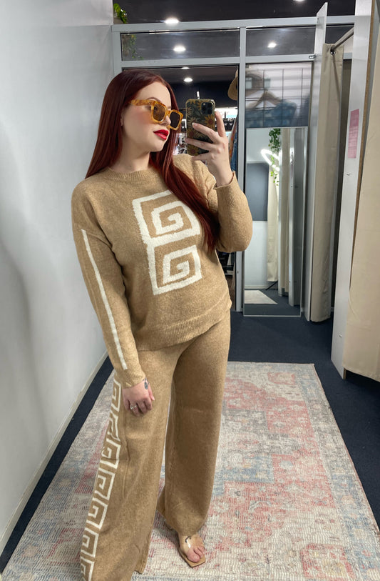 Athena By Frankie Knit Jumper & Pant Matching Set - Beige