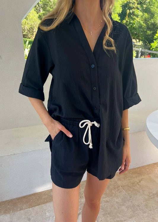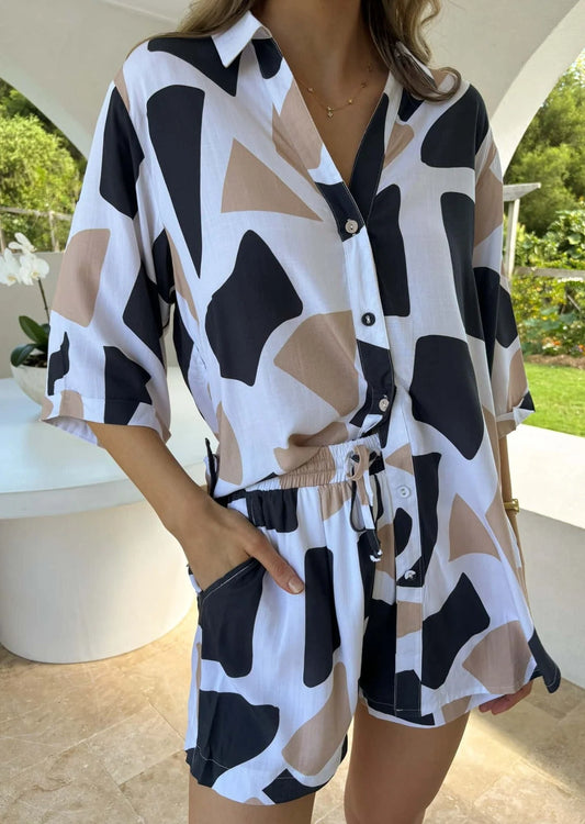 Aria Button Up Shirt & Matching Shorts Set in Mykonos Print