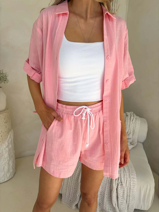 Aria By Mylk Shirts & Shorts Set - Taupe
