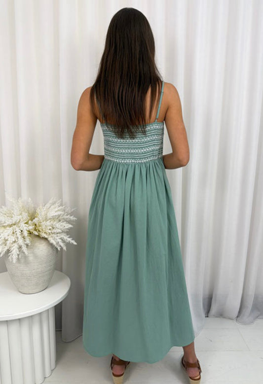 Penny Sleeveless Shirred Bust Midi Dress - Green