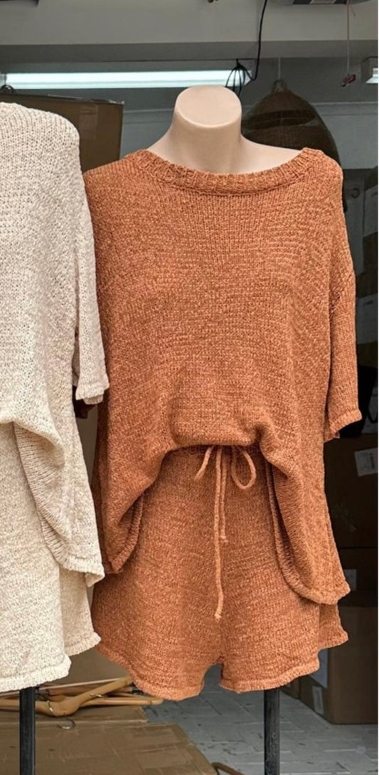 Paula By Frankie Knit Shirt & Shorts Set - Brown