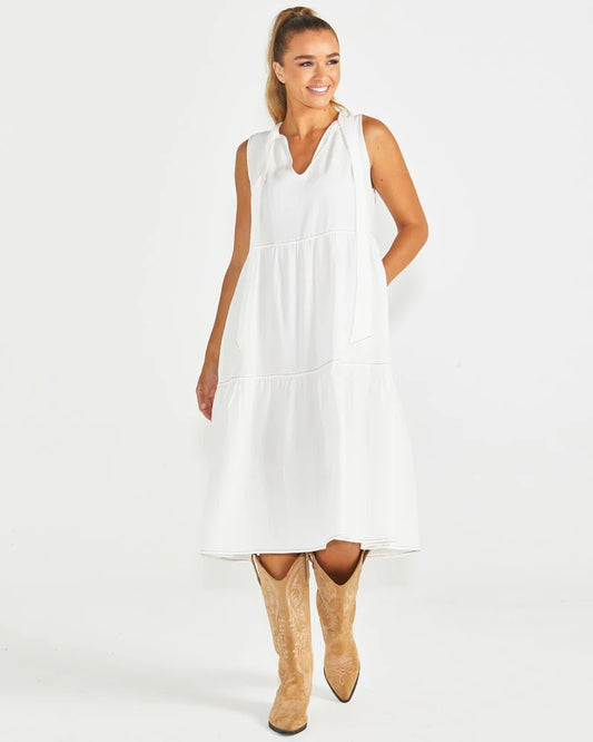 Sold outSEVILLE TIERED MIDI DRESS - WHITE