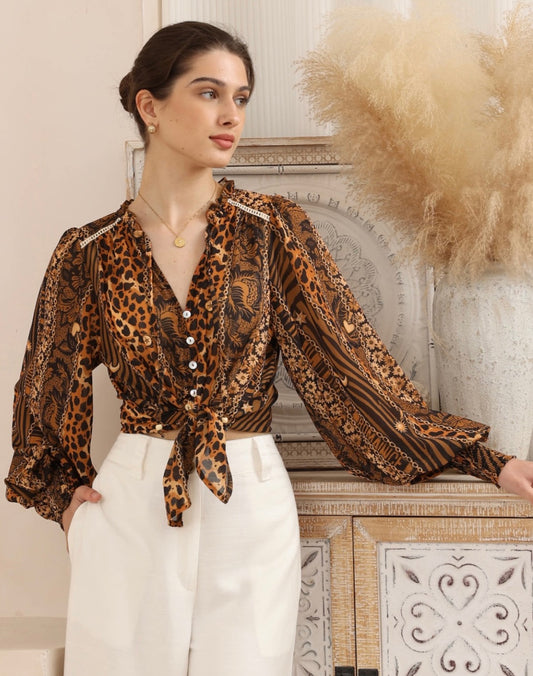 Susan Button Up Long Sleeve Shirt - Leopard