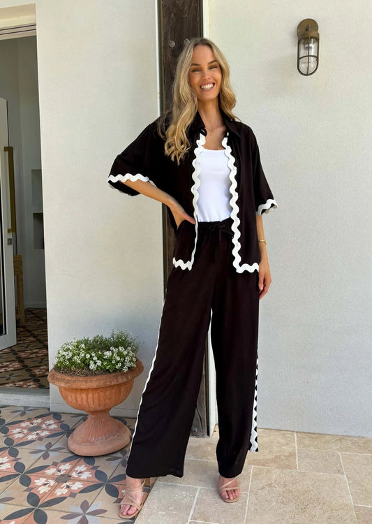 TANAH RIC RAC SHIRT & PANT SET - BLACK