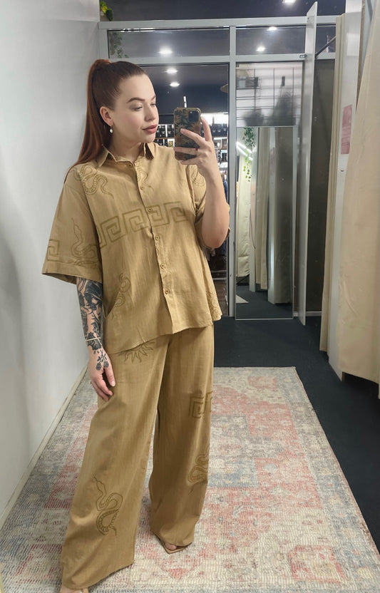 Sunny By Frankie Shirt & Pants Matching Set - Tan Snake Sun