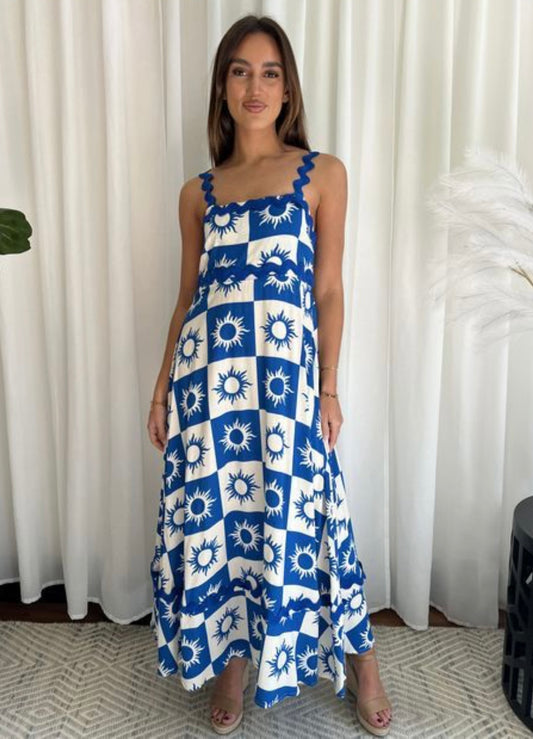 Sold outTegan RIC Rac Maxi Dress - Blue Sun
