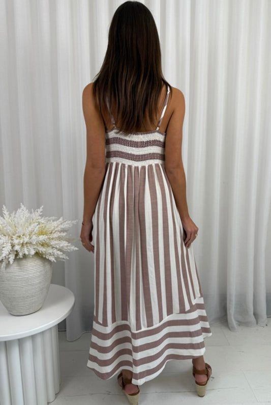 Tia Spaghetti Strap Maxi Dress - Brown Stripe