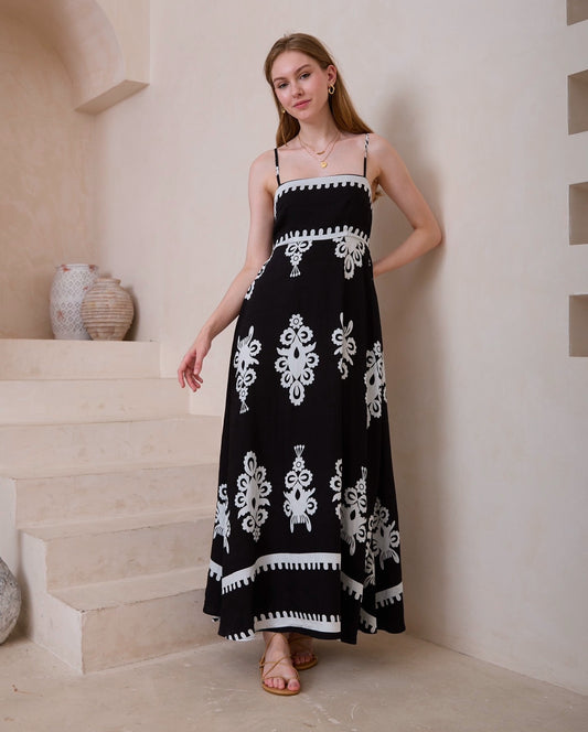 TEGAN RIC RAC MAXI DRESS - BLACK SUN