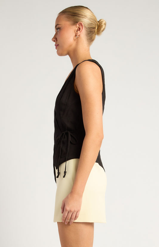 Textured Fabric Wrap Top With Beaded Toggles Shirt - Black