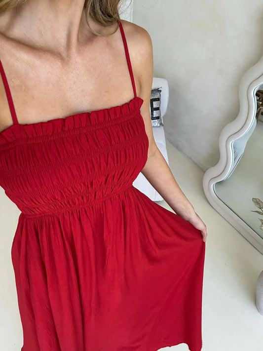 Tiara Sleeveless Ruched Maxi Dress - Red