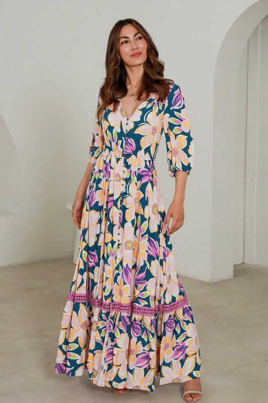 Beatrix Boho 1/2 sleeves Maxi Dress - Floral Purple